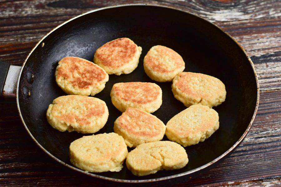 Печенье обжариваем на растительном масле на слабом огне до образования аппетитной корочки с двух сторон.