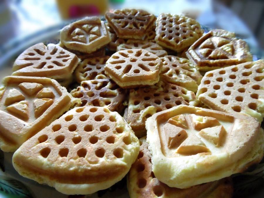 Печенье можно выпекать в специальных сковородках раскладных, которые можно перевернуть на обе стороны, а можно выпекать и в обыкновенных сковородках.