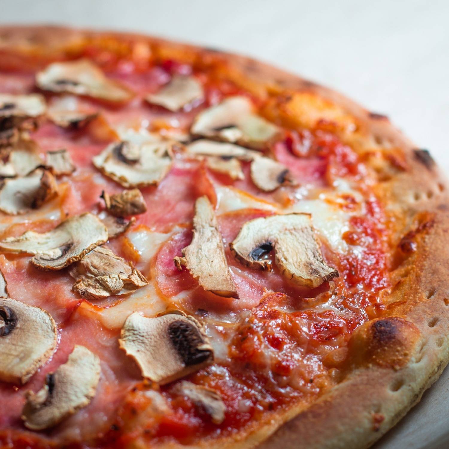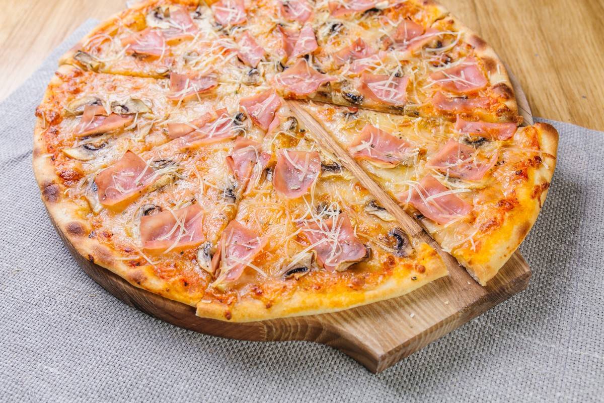 Как приготовить пышную пиццу с грибами, ветчиной и моцареллой