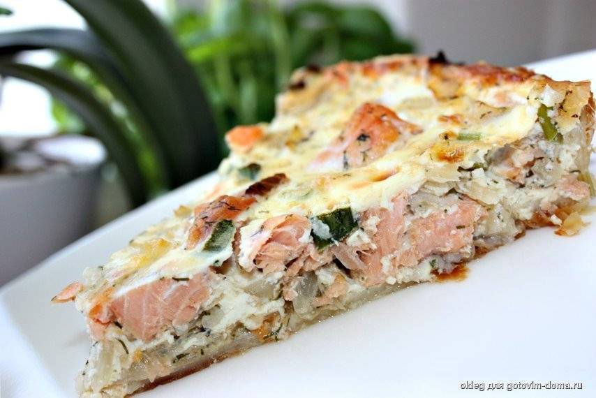Открытый пирог киш из семги с брокколи