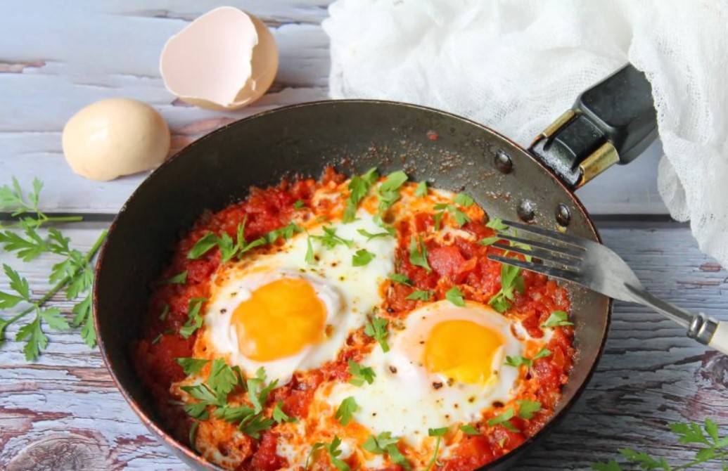 Очень вкусная яичница с помидорами и грибами