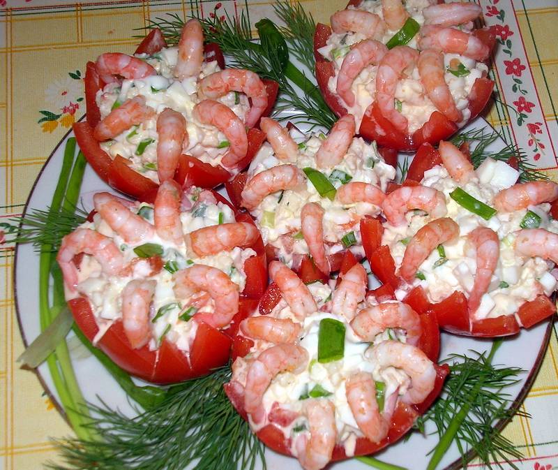 Помидоры, фаршированные креветками — самый простой и вкусный рецепт