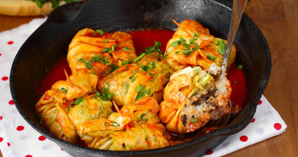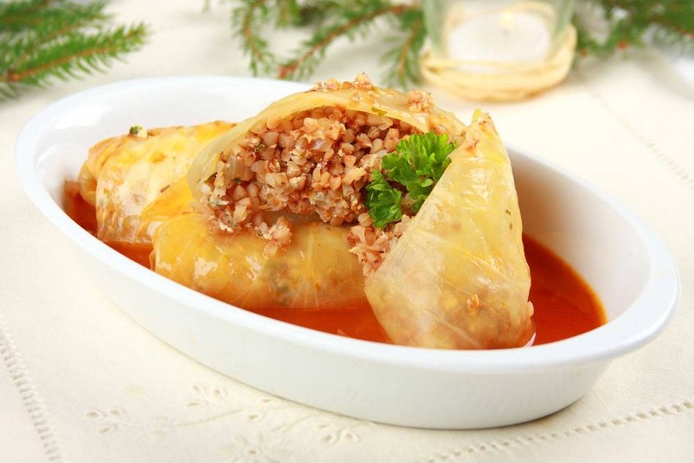 Еще один не менее вкусный вариант — постные голубцы с гречкой. Они обладают пикантным вкусом из-за добавления картошки и грибов.
