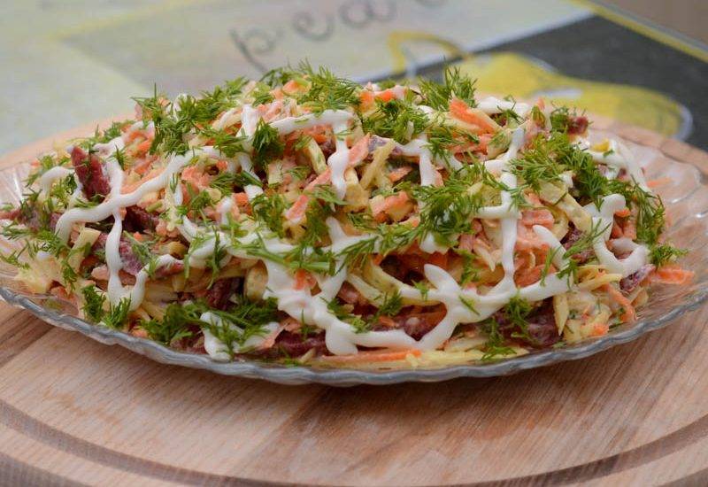 Вкусный и простой салат на скорую руку с колбасой — «Оливье»