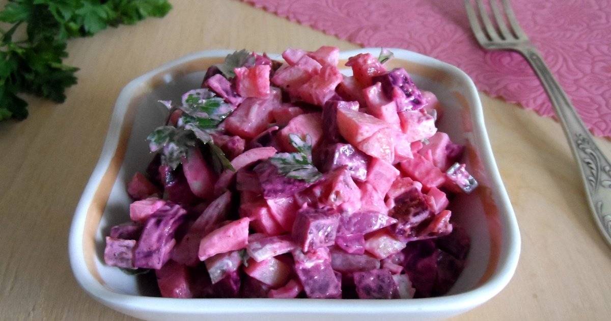 Салат выделяется необычным составом, внешним видом и вкусом. Можно подавать в качестве теплой закуски