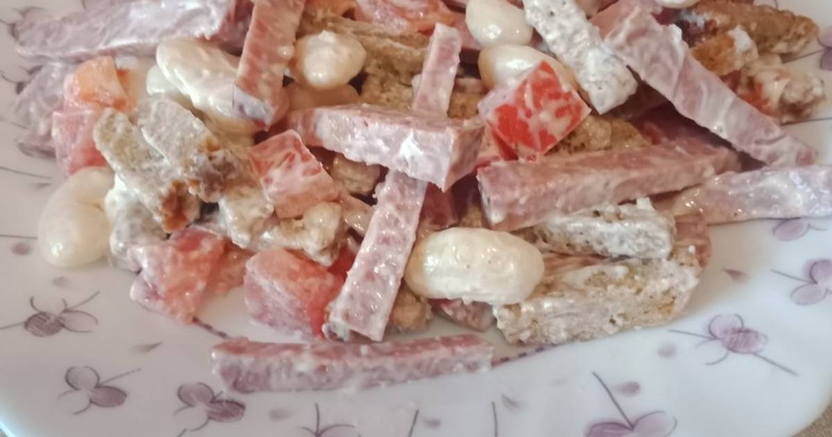 Салат фасолевый «Белый кенгуру» с копченой колбасой