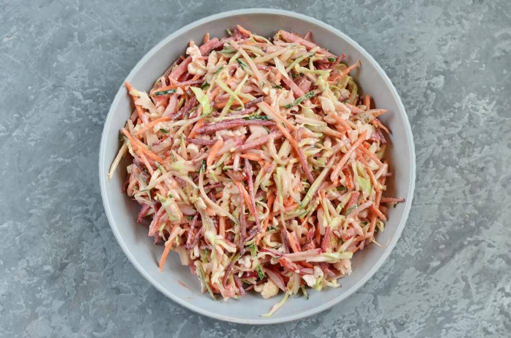 Рецепт 4, пошаговый: салат с колбасой на скорую руку