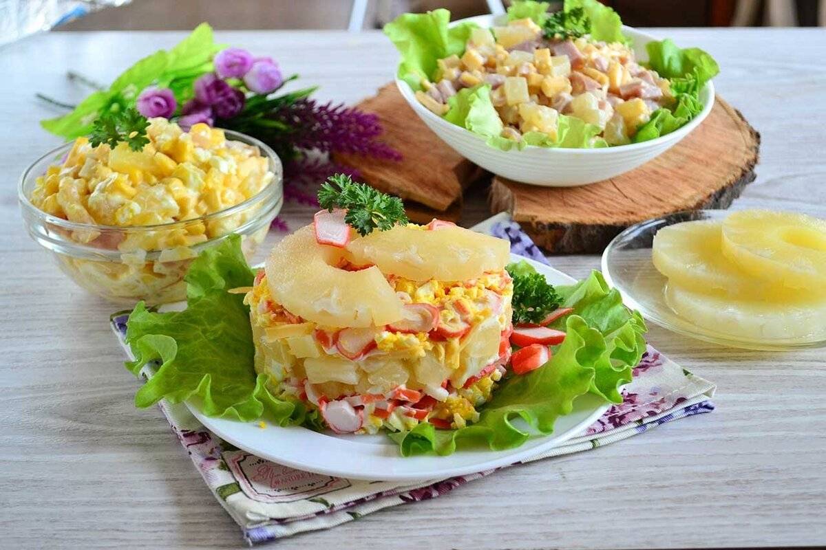 Оригинальный салат слоями с ананасами, курицей и сыром — простой рецепт с видео