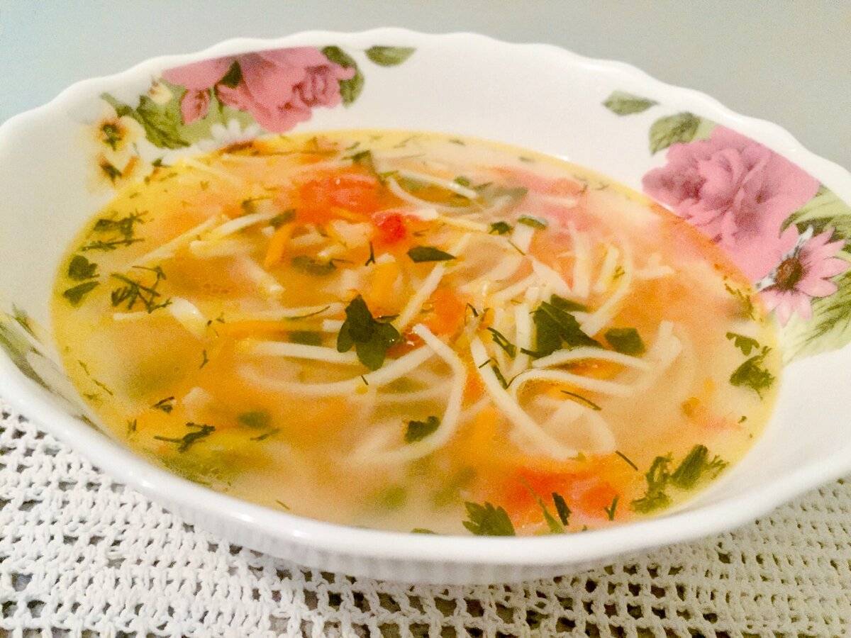Возможно, вас удивлю, но начнем мы с рецепта, который не предполагает наличие картофеля. Но от этого суп не получится хуже. Питательность ему придадут макаронные изделия. Кстати, их можно использовать любые: от паутинки до домашней лапши. А аромат усилим свежей зеленью.
