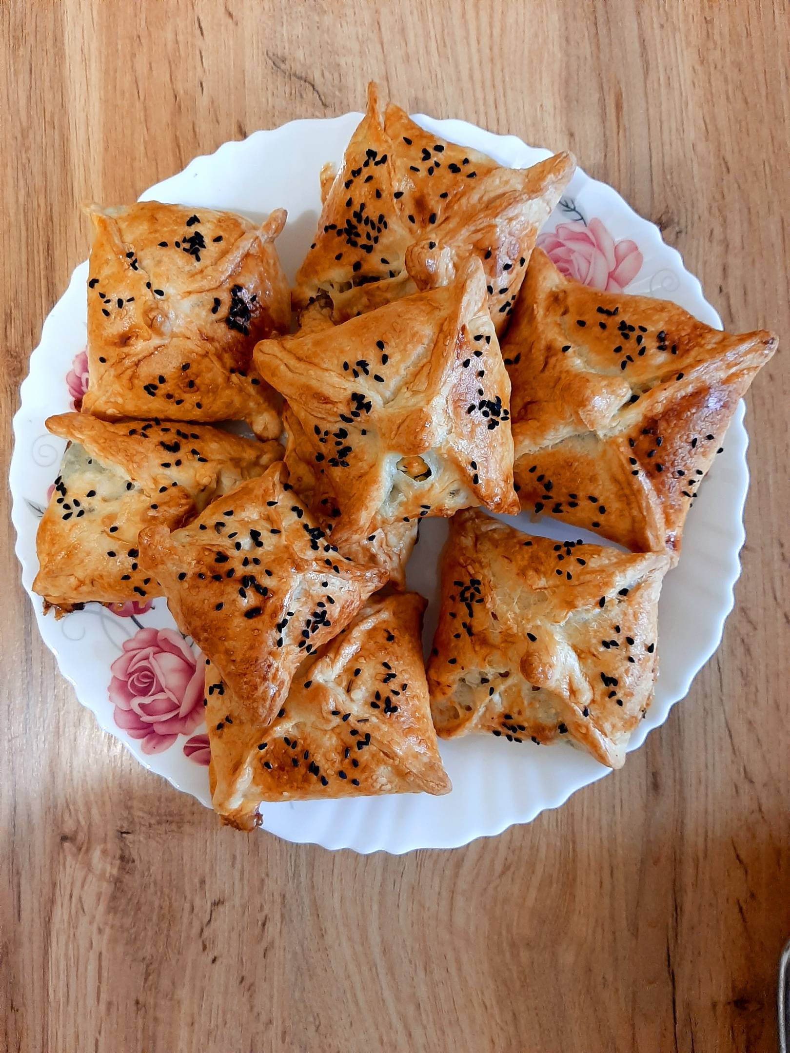 8. Румяный пирог из слоеного теста готов. Подавайте к столу!