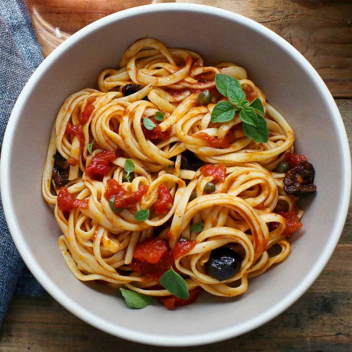 - Puttanesca | Путанеска – ароматный соус для спагетти из томатов, оливкового масла, анчоусов, оливок, каперсов и чеснока.