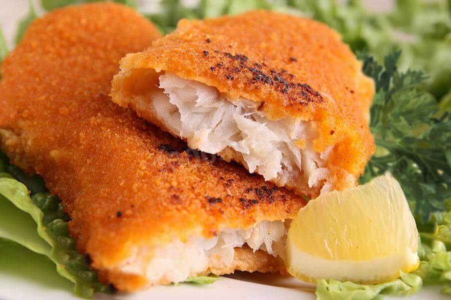 - Приготовить кипящий на сковороде фритюр и обжарить кусочки судака, обваленные сначала в муке, затем обмакнутые в кляр, до золотистой корочки с обеих сторон. Переворачивать нужно несколько раз.