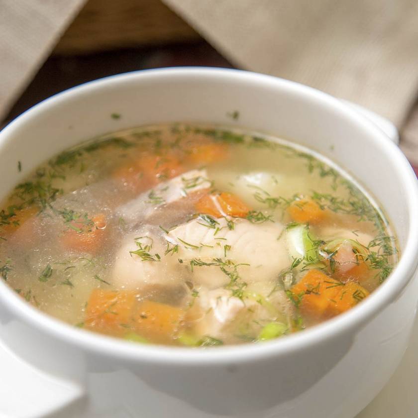 Диетическую уху можно готовить без картошки и крупы, делая упор только на рыбный бульон с овощами.