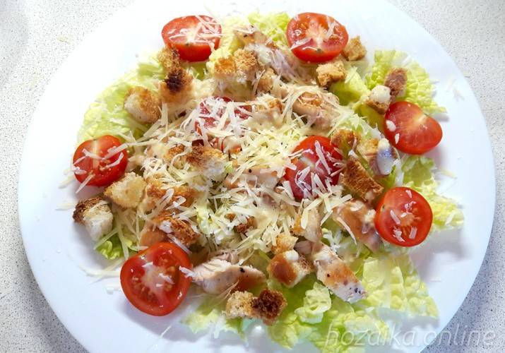 Салат цезарь с курицей – простой рецепт с сухариками и пекинской капустой