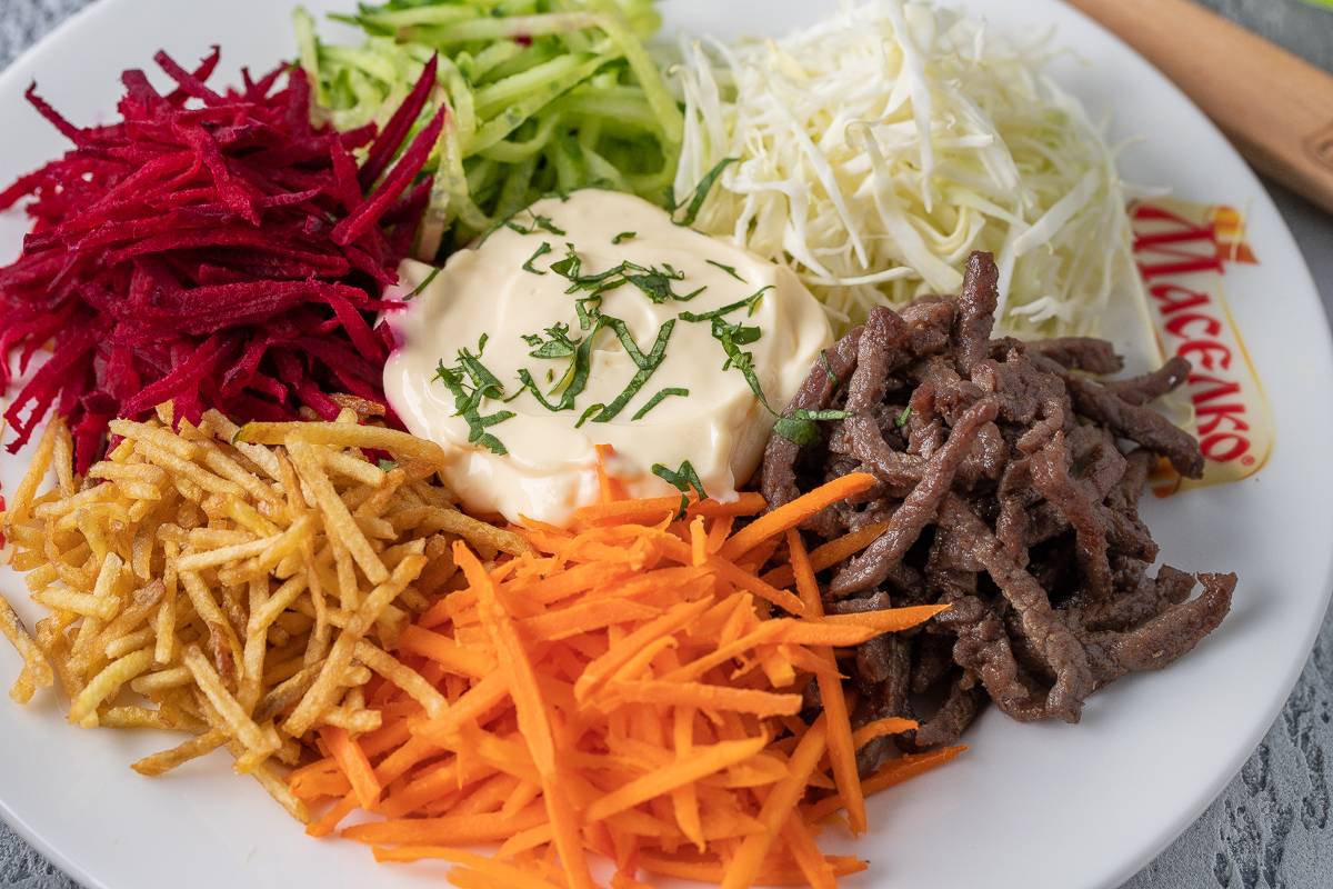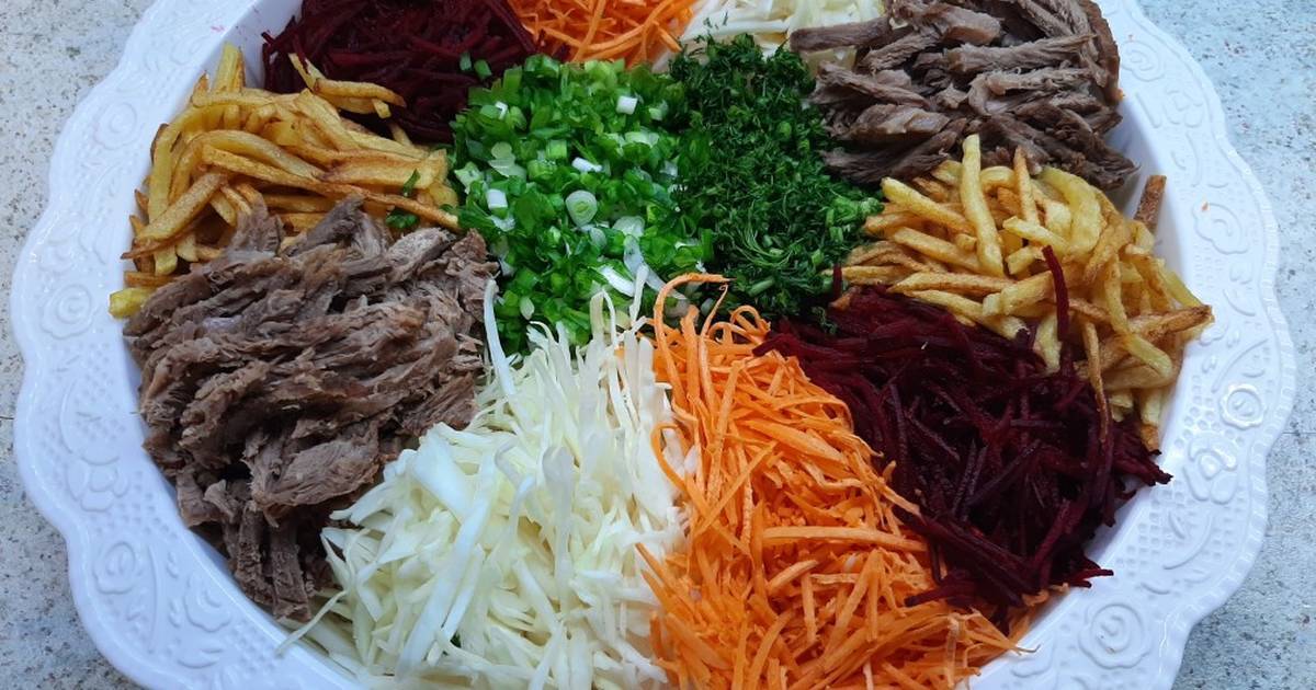 Вкусный французский салат с мясом. Пошаговый рецепт