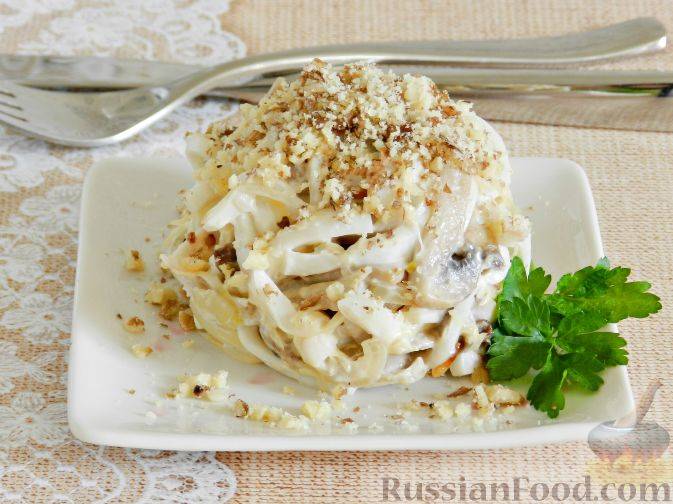 Салат с кальмарами – самый вкусный рецепт с яйцом и луком