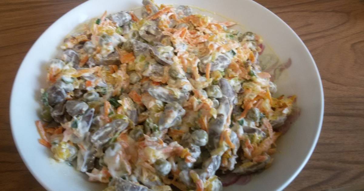 Стоит попробовать приготовить и этот салат из свиного сердца. Угощение получается сочное, ароматное, очень вкусное. Его обязательно оценят по достоинству. Возьмите на заметку этот рецепт с фото.