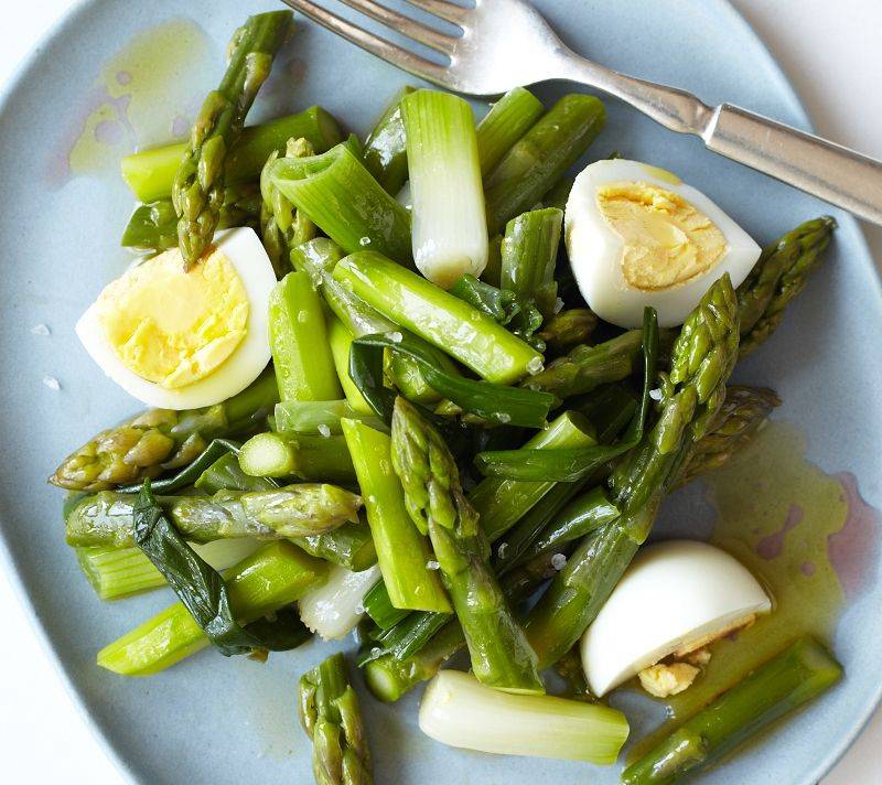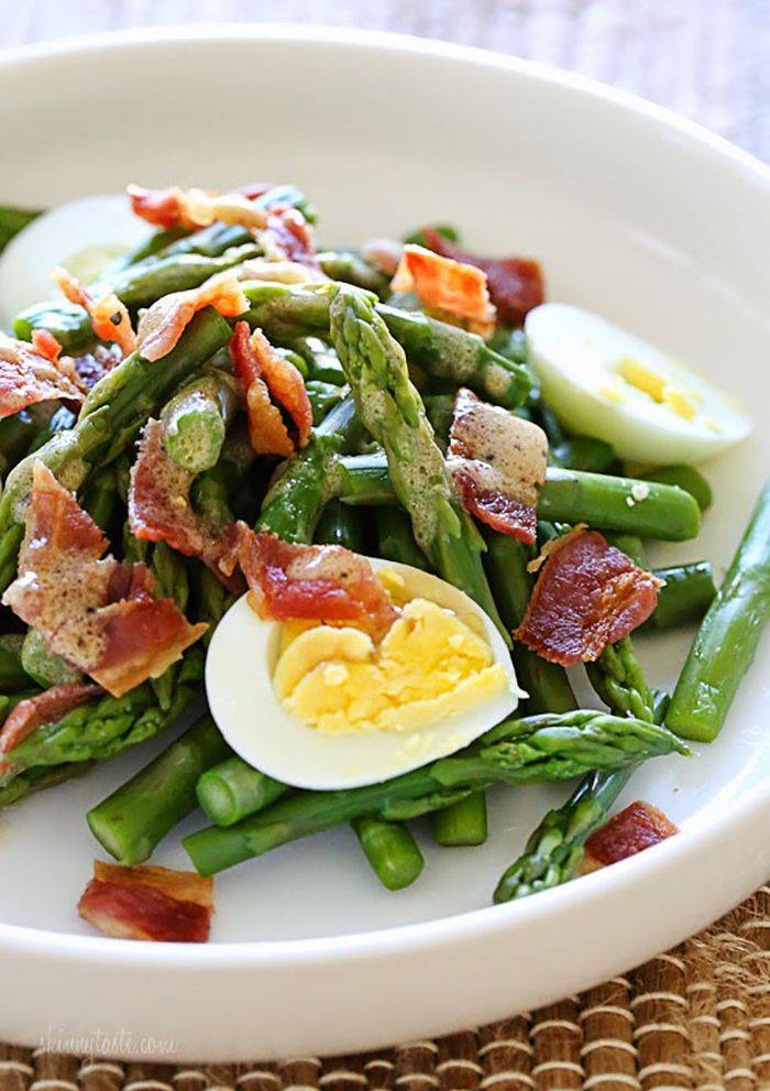 Готовую спаржу смешивают с остальными ингредиентами салата, а для заправки можно использовать разные соусы, а также, сметану или натуральный йогурт.