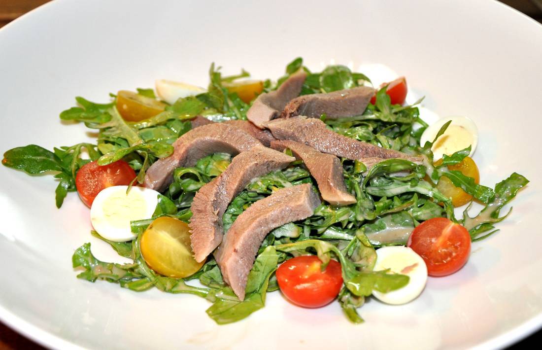 Рецепт приготовления салата с языком и каперсами:
