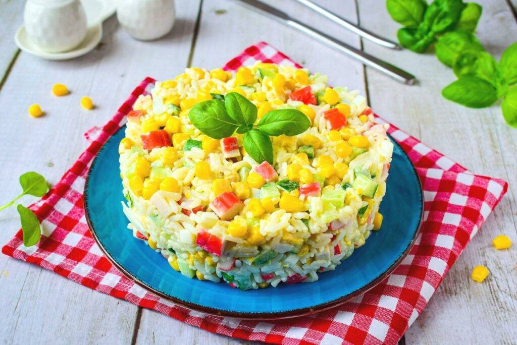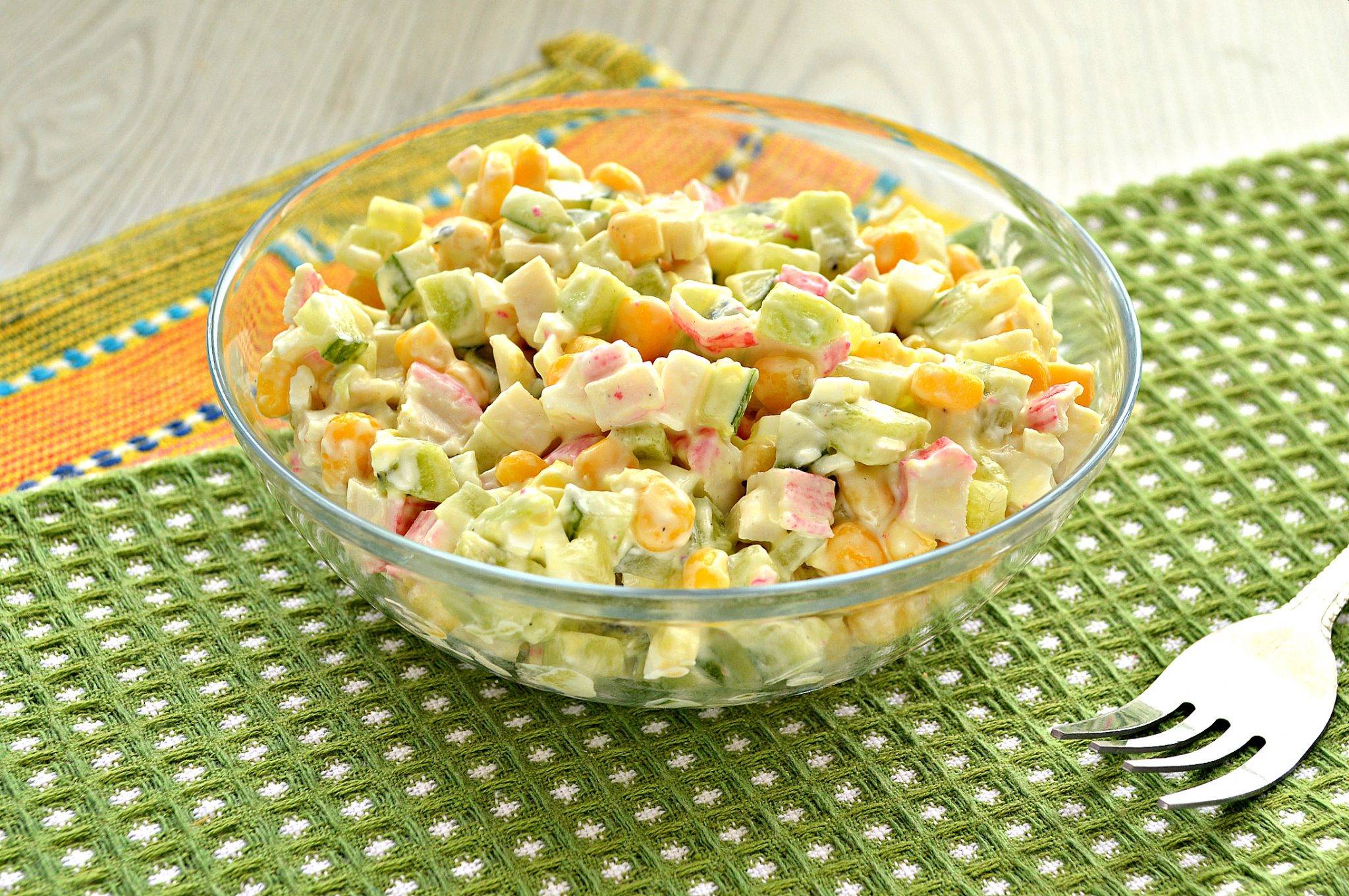 Крабовый салат с огурцом и кукурузой без риса — классический рецепт