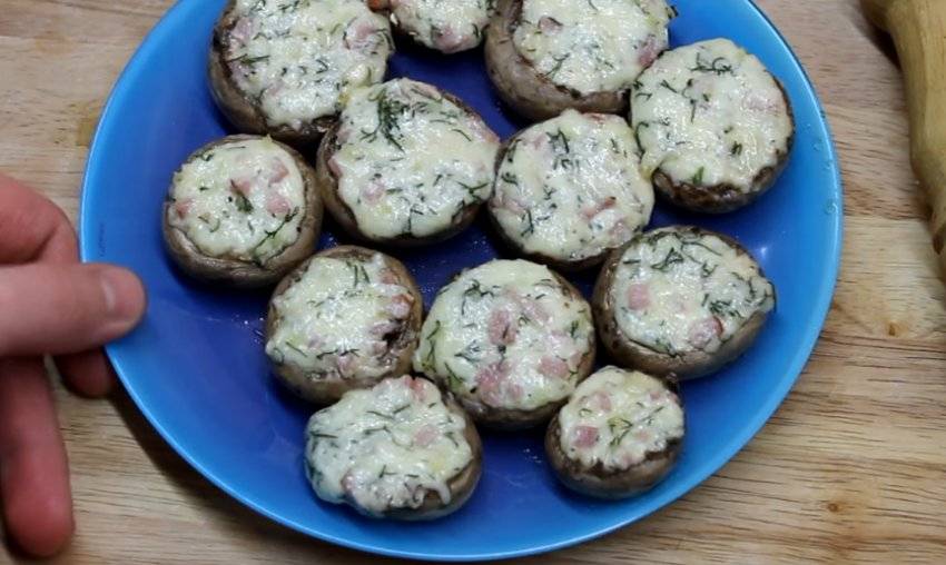 Рецепт 1: фаршированные шампиньоны в духовке с сыром и сметаной