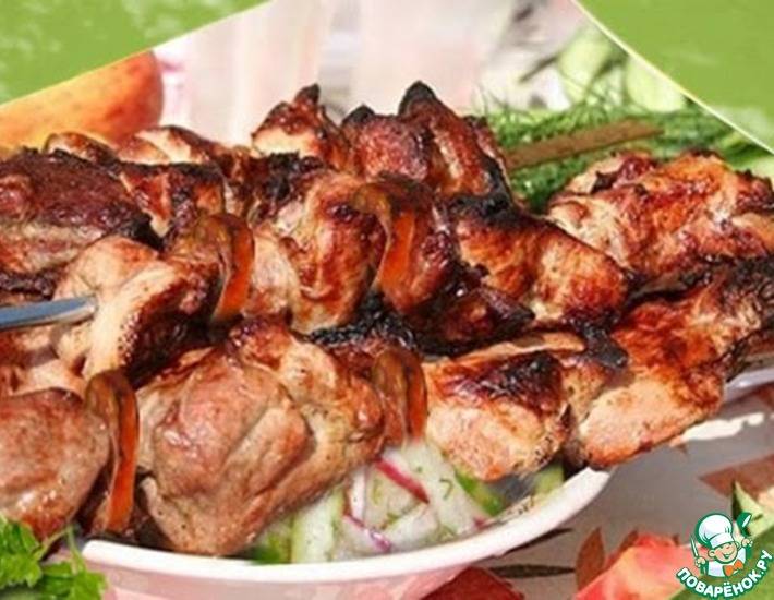Накрыть крышкой, убрать на ночь в холодильник. Готовое маринованное мясо нанизать на шампуры и жарить на мангале либо в духовке – кому как больше нравится.