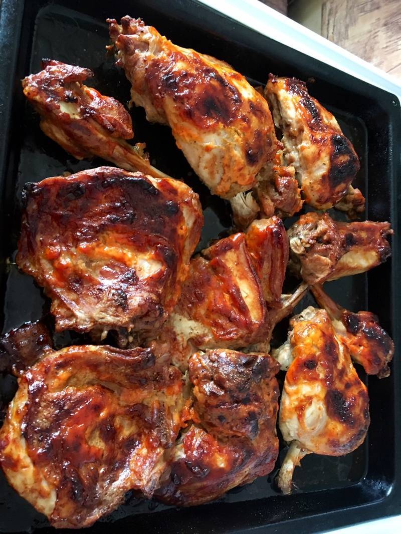 Для большей сочности поливаем мясо маринадом, в котором оно и мариновалось.