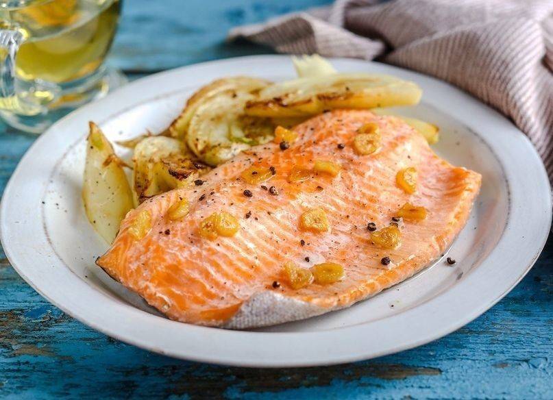 Блюдо понравится в том случае, если его употреблять в пищу в горячем виде. Красную рыбу советуют подавать с брокколи, цветной капустой, стручковой фасолью, спаржей, чтобы сделать ее максимально полезной.