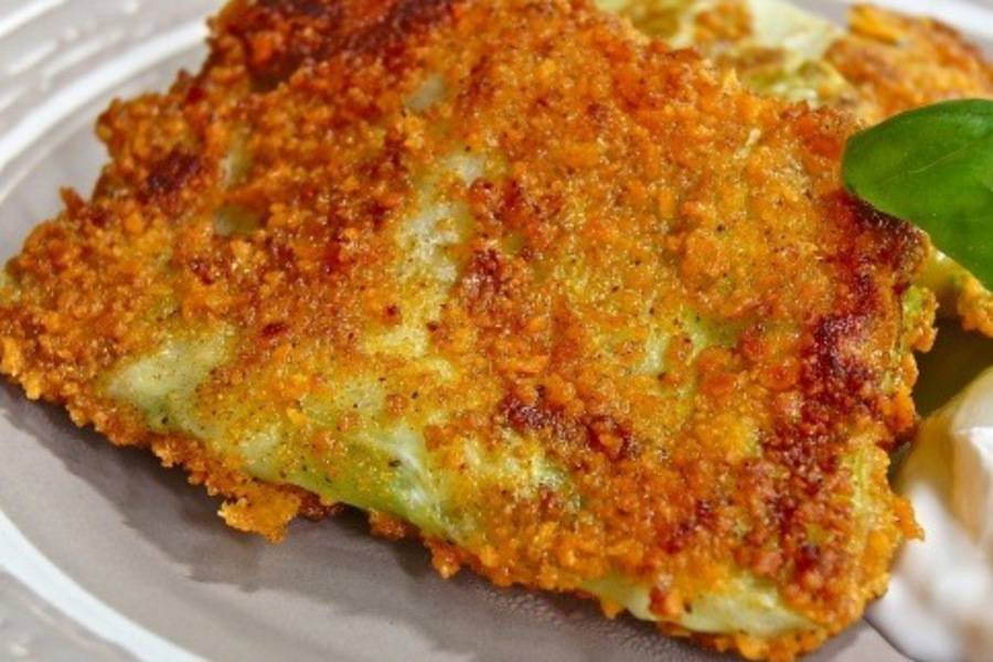 Приготовление шницеля из листьев капусты с сырной начинкой: