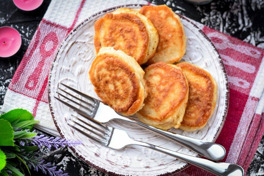 9.Готовые оладушки снимайте со сковороды и приступайте к приготовлению следующей партии. Подавайте выпечку в теплом виде. Это отличный десерт к чаю, которому будут рады и взрослые, и дети. По этому рецепту получаются очень мягкие, воздушные пышки, пористые и вкусные.