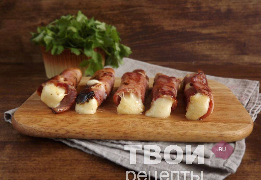 - К закуске из сыра и бекона хорошо подать крекеры или хлебные палочки (по желанию).