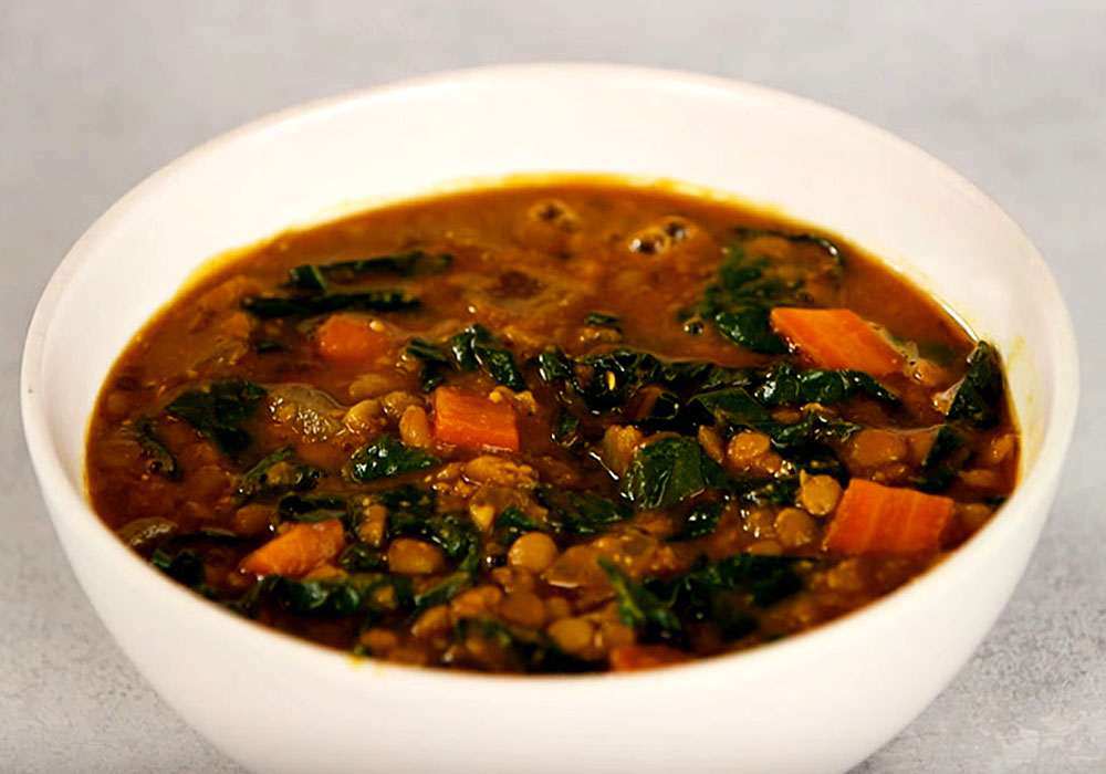 В простом вегетарианском супе отсутствуют томаты или экзотические приправы, но он все равно выходит аппетитным и насыщенным. Всего несколько столовых ложек горячего блюда позволяет насытиться и согреться. Дело в том, что в чечевице содержится много натуральных сахаров и крахмалов, позволяющих получать заряд энергии без набора лишних килограммов.