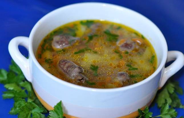 Замечательный рецепт супа из куриных сердечек с добавлением пшена. Легкий и пикантный, вы обязательно приготовите его еще не один раз.