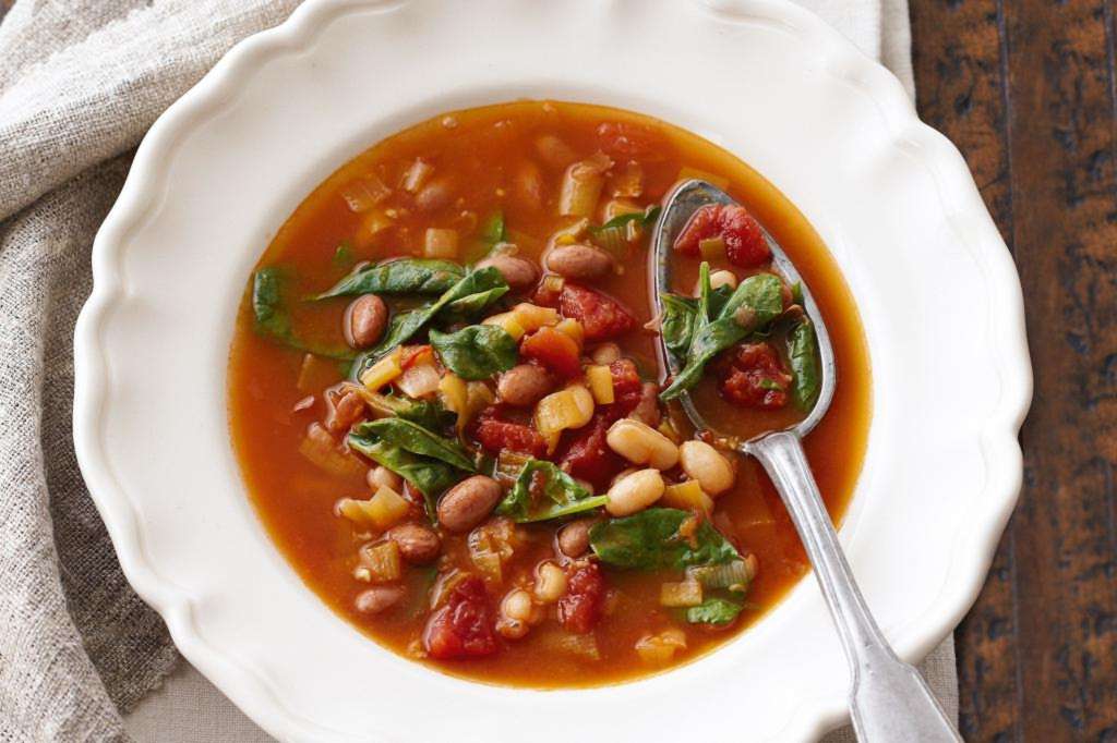 Легкий, ароматный и очень вкусный суп с малым содержанием жиров, но насыщенный углеводами и клетчаткой. Для приготовления понадобятся: вода, морковь, репчатый лук, стебли сельдерея, белая или красная фасоль, томатная паста или помидоры, оливковое масло, черный перец, свежий тимьян, лавровый лист.