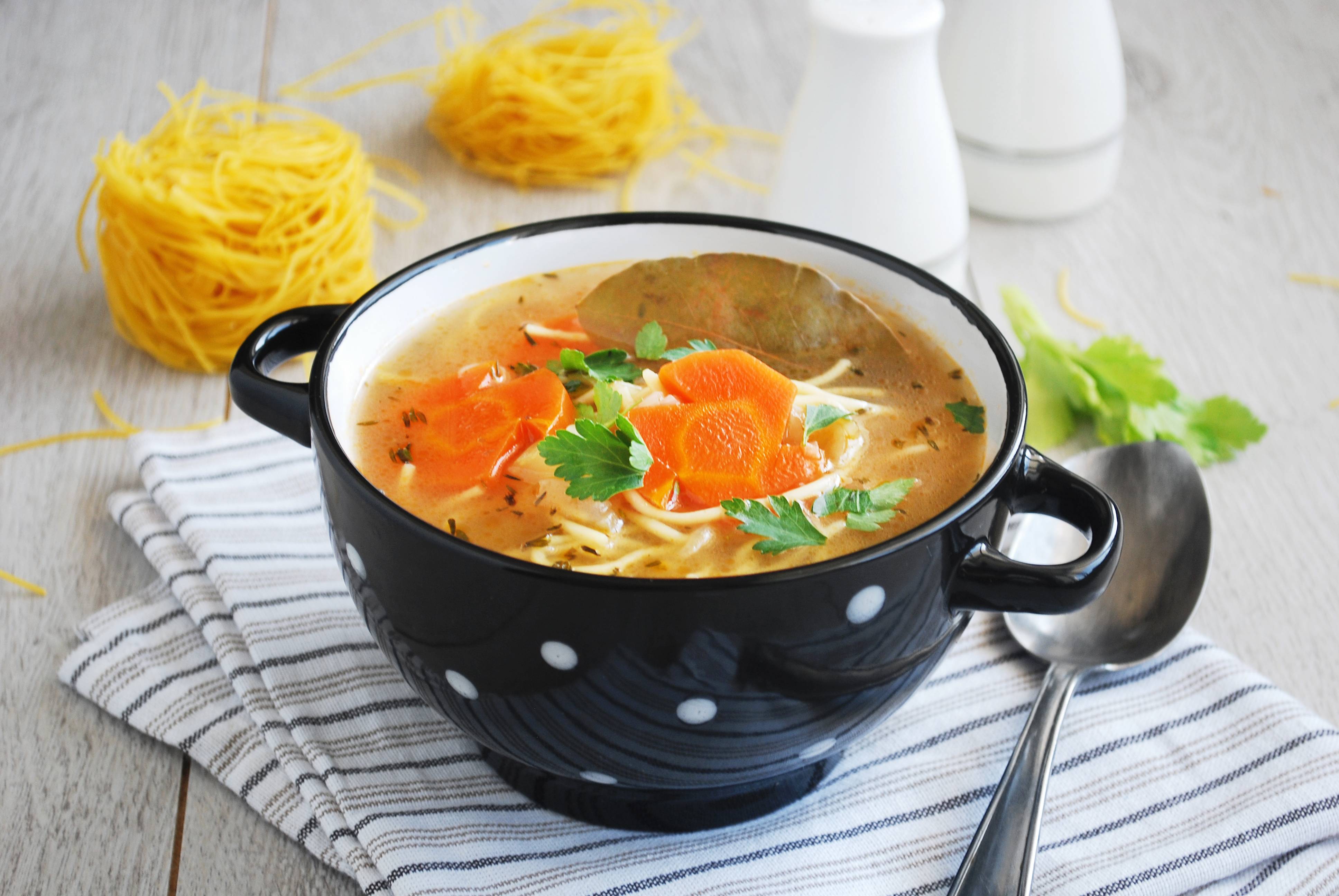 Хочу предложить более легкий диетический суп, с курицей. В этом супе все ингредиенты просто идеально подходят друг другу. Нежная лапша, ароматные овощи плюс диетическое мясо, и все это в желто золотистом бульоне, приобретают просто невероятный вкус.
