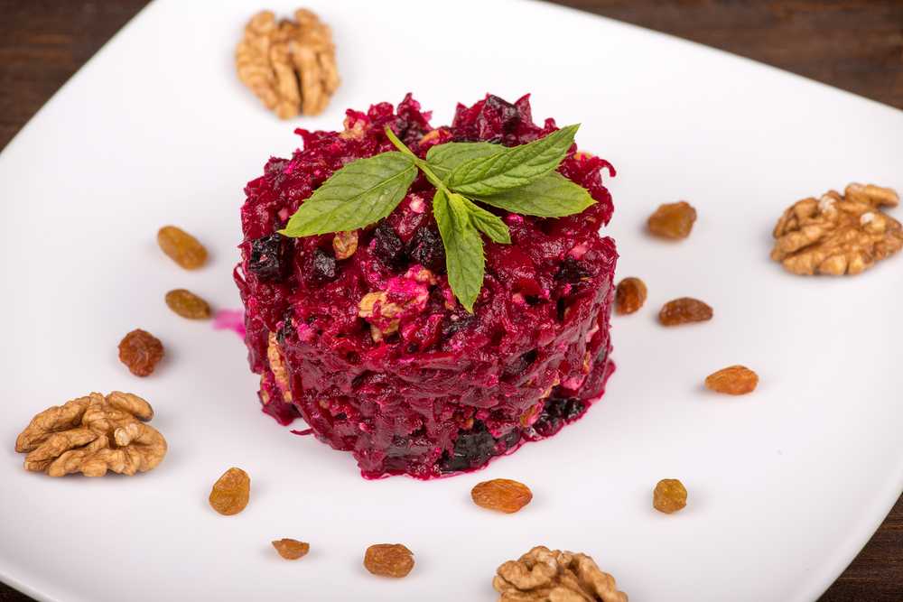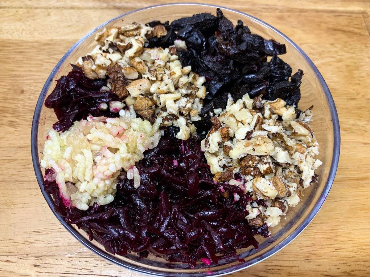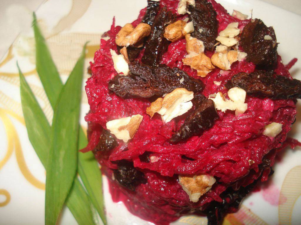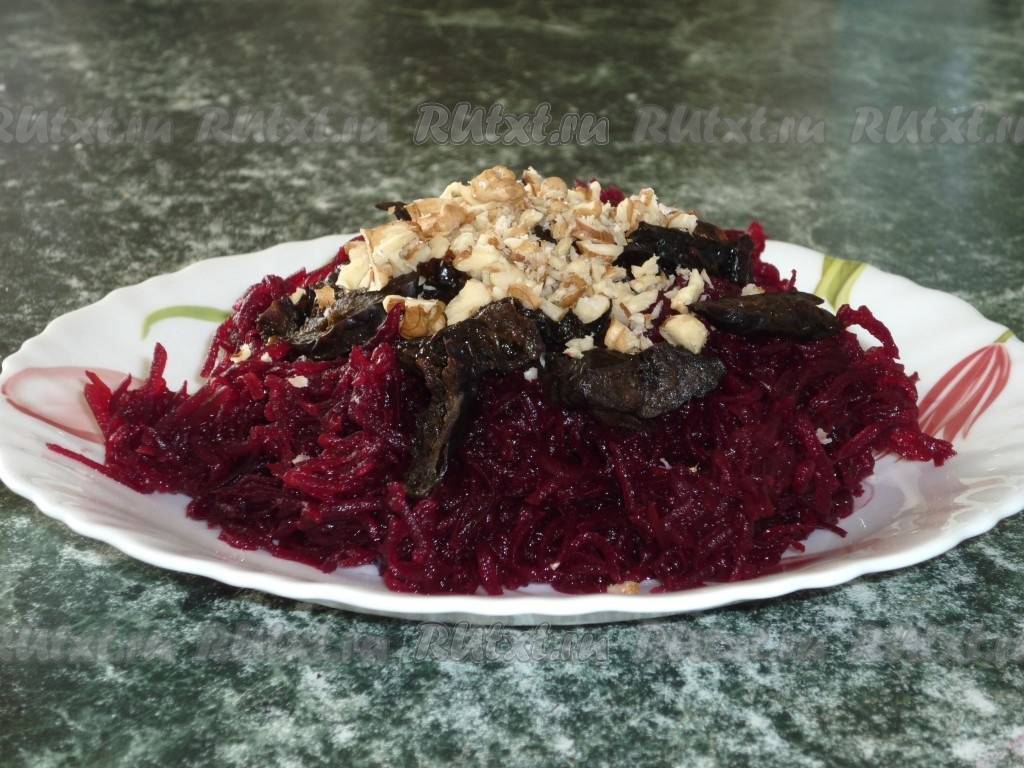 Салат из свеклы с черносливом и грецкими орехами без майонеза