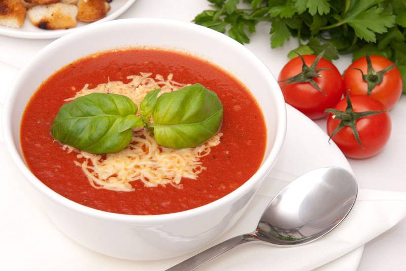 Приготовьте вкусный томатный суп-пюре. Классический рецепт наверняка знаком многим. А если нет, то пошаговые фото помогут вам его приготовить. Со сливками суп получается нежнее и мягче. Готовить суп можно круглый год, но зимой не покупать для него безвкусные тепличные овощи, а использовать в качестве основы помидоры в собственном соку.
