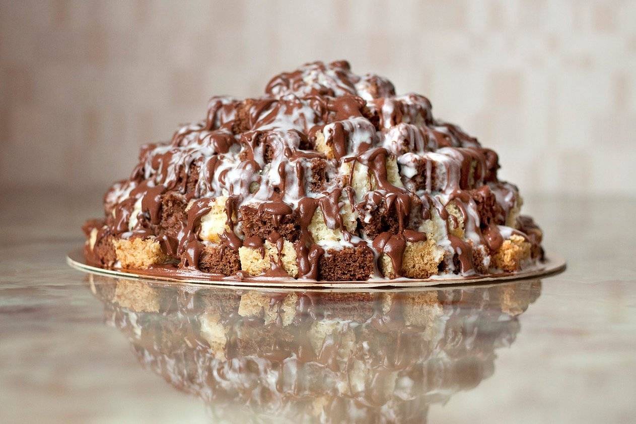 «Графские развалины» со сметанной пропиткой и глазурью из шоколада