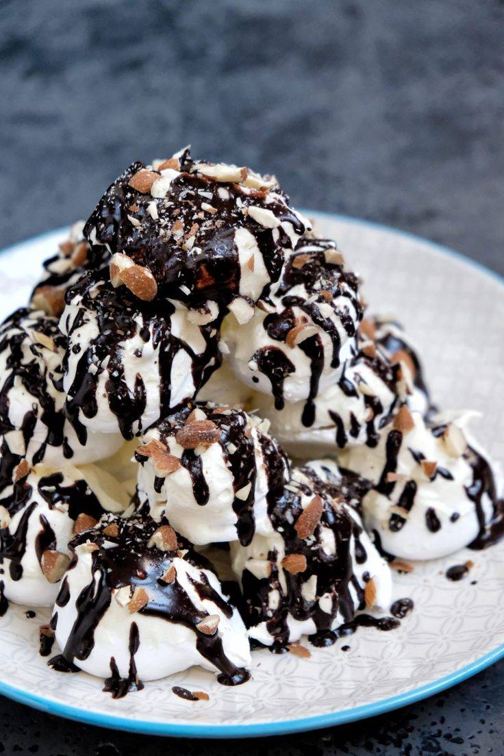 Если хочется сэкономить время или есть страх, что безе не получится, то можно заранее купить готовые воздушные пирожные в ближайшем супермаркете.