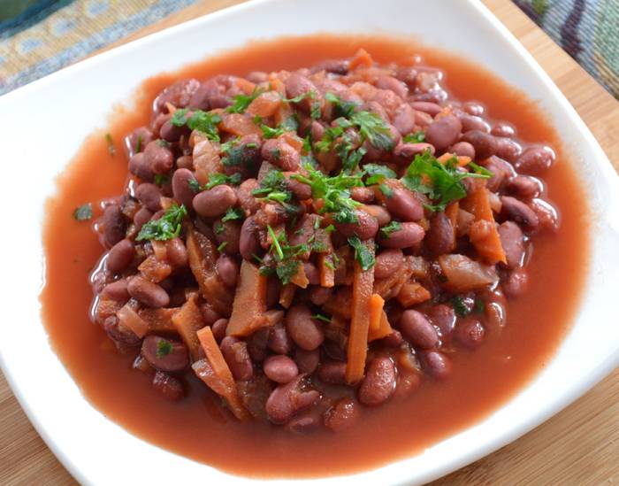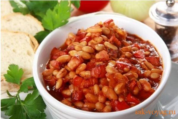 Этот рецепт хорош тем, что для него отлично подходят как свежие ингредиенты, так и консервированные. Вместо сушеной фасоли можно взять консервированную, а томатный соус можно заменить помидорами в собственном соку.