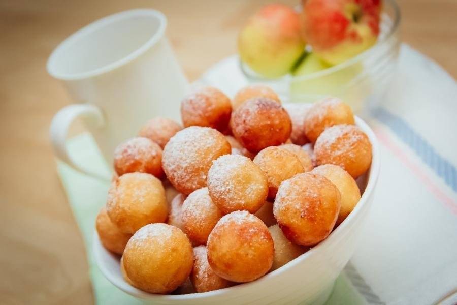Во время жарки пончики следует постоянно переворачивать, в этом случае удобнее воспользоваться небольшой шумовкой. Будьте крайне аккуратны работая с горячим маслом. Готовность шариков Вы сможете определить по внешним показателям — цвету.