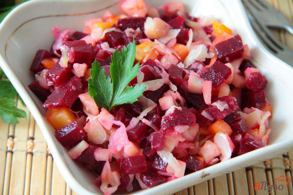 Ну вот и всё. Не так уж всё было сложно. Наш ароматный, красивый, очень вкусный салат — винегрет готов.
