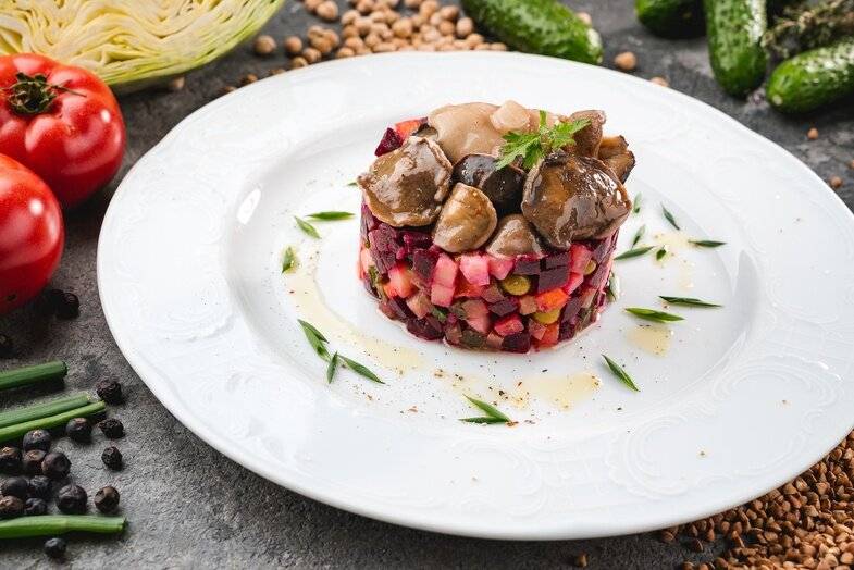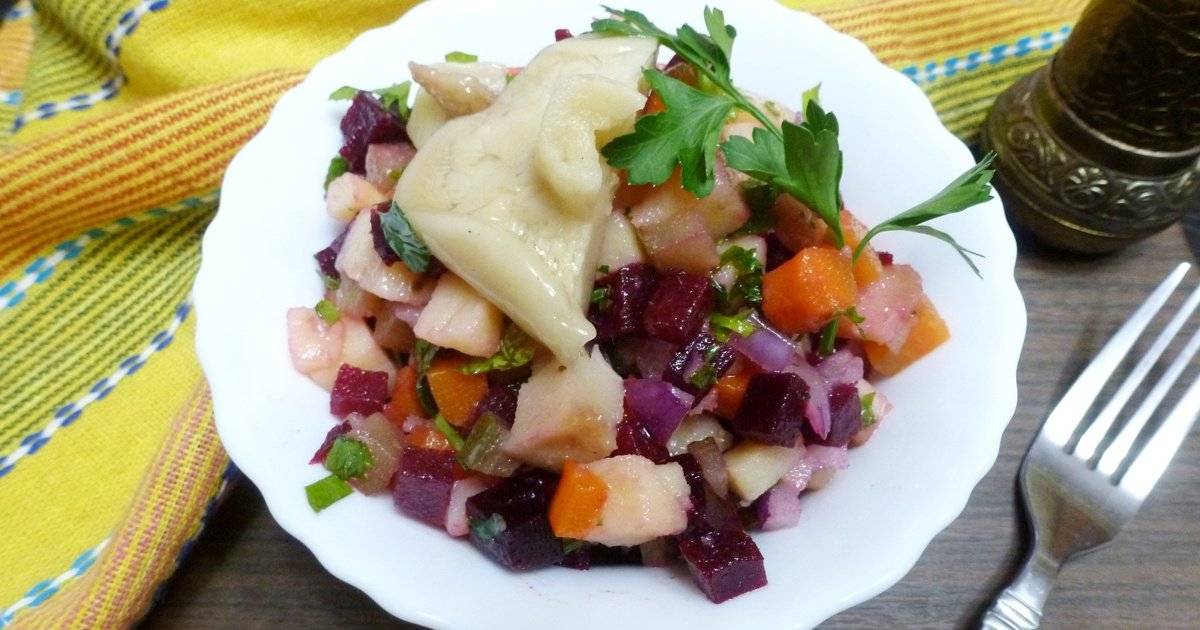 Винегрет с грибами – вкусное и сытное блюдо, которое многим нравится намного больше обычного винегрета. Делать его можно из соленых, маринованных или жареных даров леса. От того, какой вид грибов и заправки вы используете, зависит и вкус готового блюда. Красиво его оформив, вы можете не стесняться подать винегрет с грибами даже к праздничному столу.