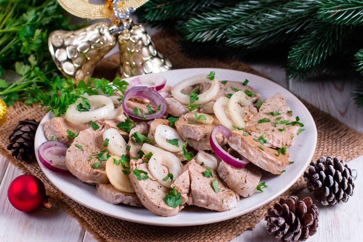 - Варено-копченая рулька (можно без кости) – парочка; впрочем, смотрите по размеру рульки и количеству и “качеству” гостей: иной гость и целую рульку схомячит;