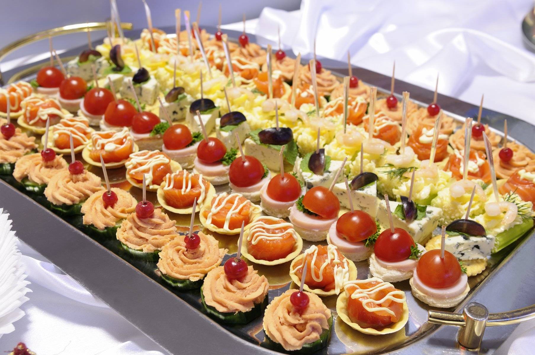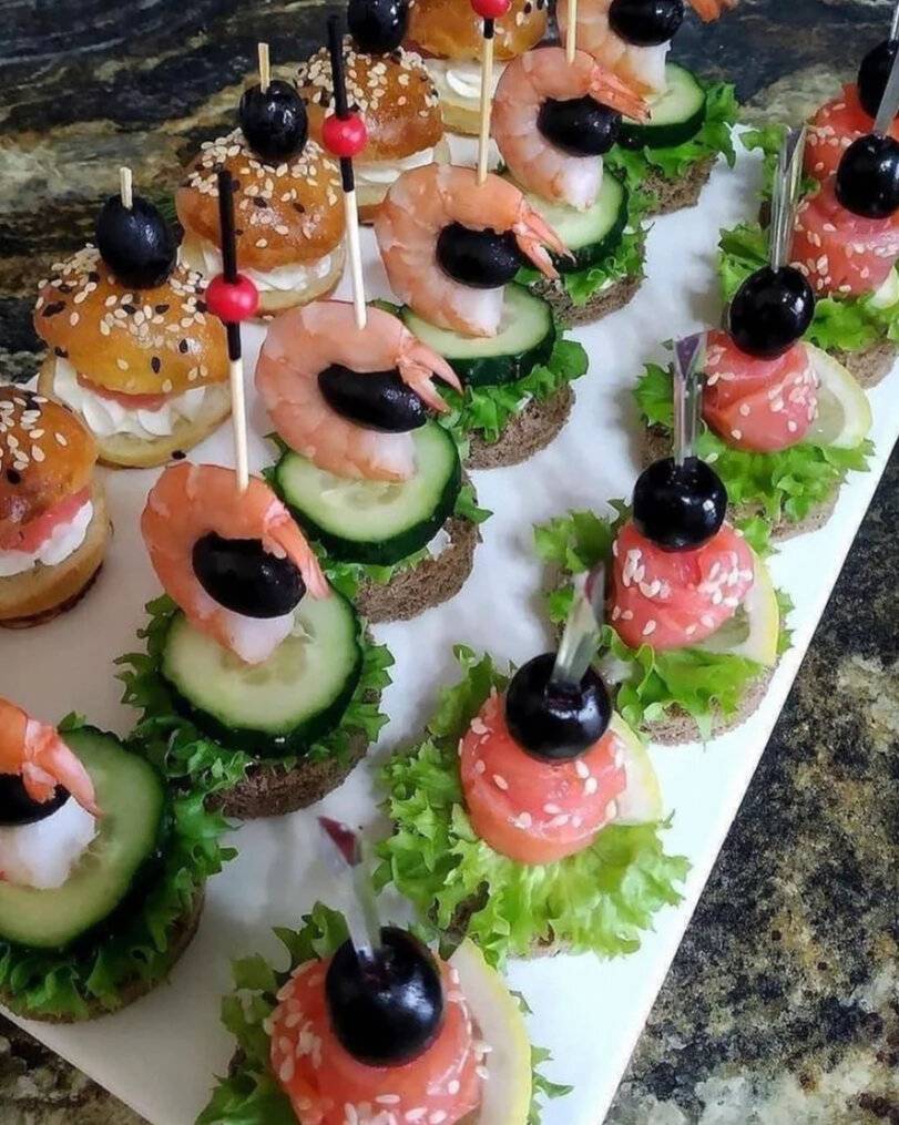 Идеи холодных закусок-канапе на шпажках для фуршетного стола