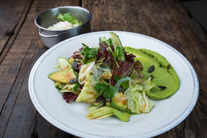 В отдельной мисочке приготовьте соус. Зубчики чеснока очистите от шелухи, измельчите ножом. С лимона снимите цедру, выдавите сок. Смешайте чеснок, сок и масло. Это будет заправка для салата.