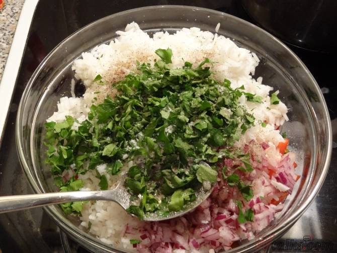 - В готовый рис вылить заправку, аккуратно перемешать.