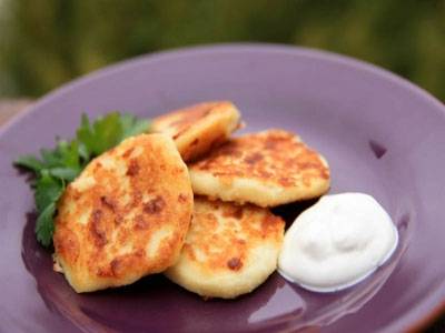 - Отдельно соедините творог с мукой, присыпьте все сахаром и солью. В центр каждой лепешки выложите творожную начинку, и придайте заготовке форму котлет. После этого обваляйте их в сухарях и обжарьте до готовности. Блюдо готово.