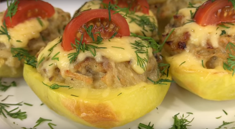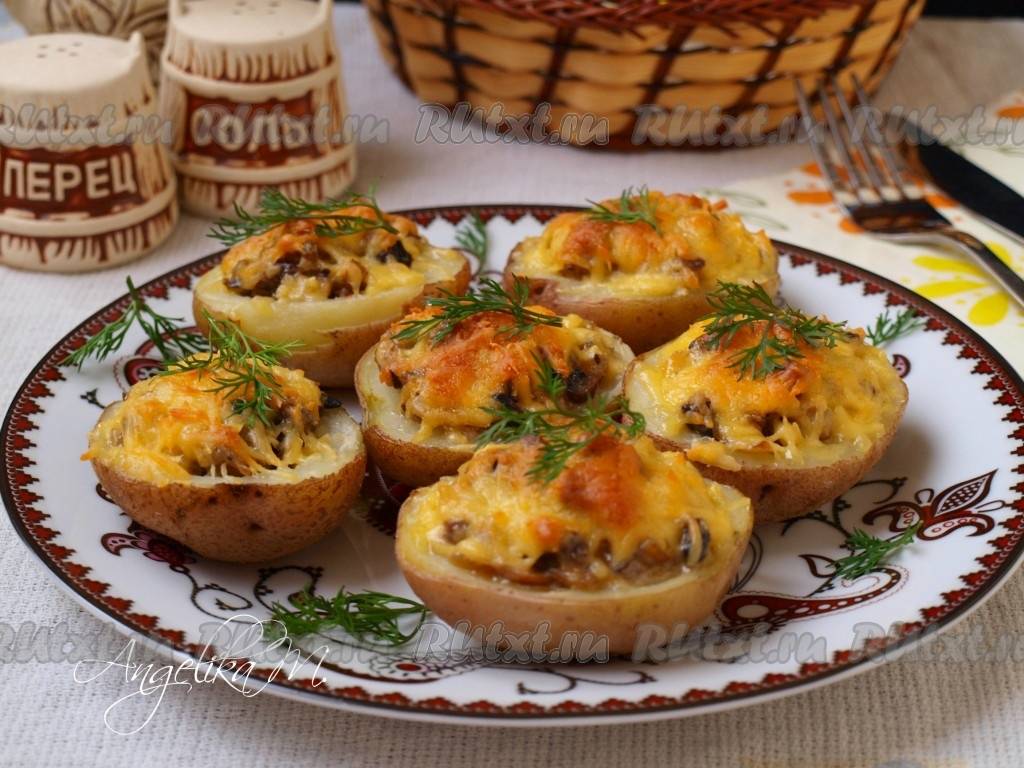 Из картошки сделать корзинки. Для этого каждый овощ хорошо промыть, вынуть ложкой сердцевину в каждой половинке картошки и выложит туда начинку с грибами и соус. Присыпать все тертым сыром. На противень выложить фольгу, затем поставить картошку и готовит около 30 минут при стандартной температуре. Еще можно приготовить вкусный суп из куриной грудки.